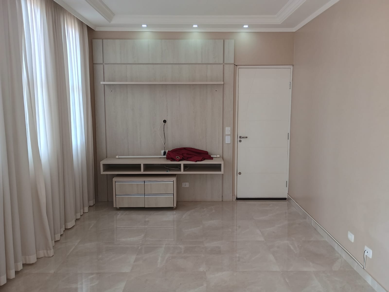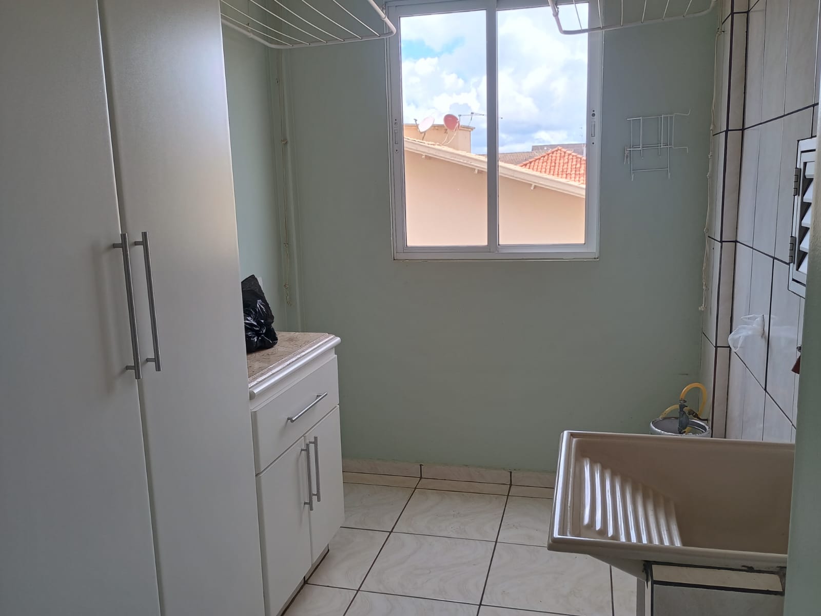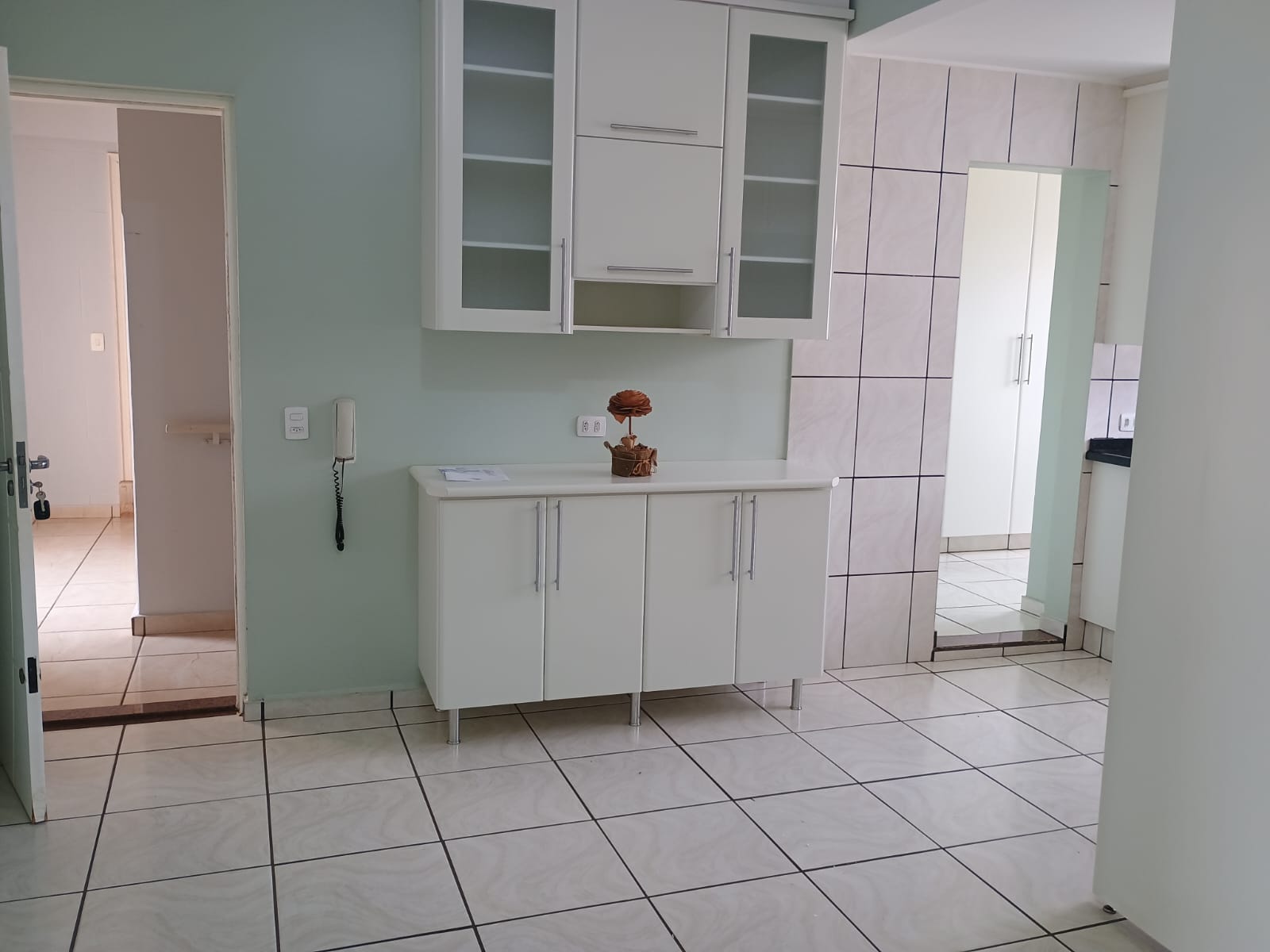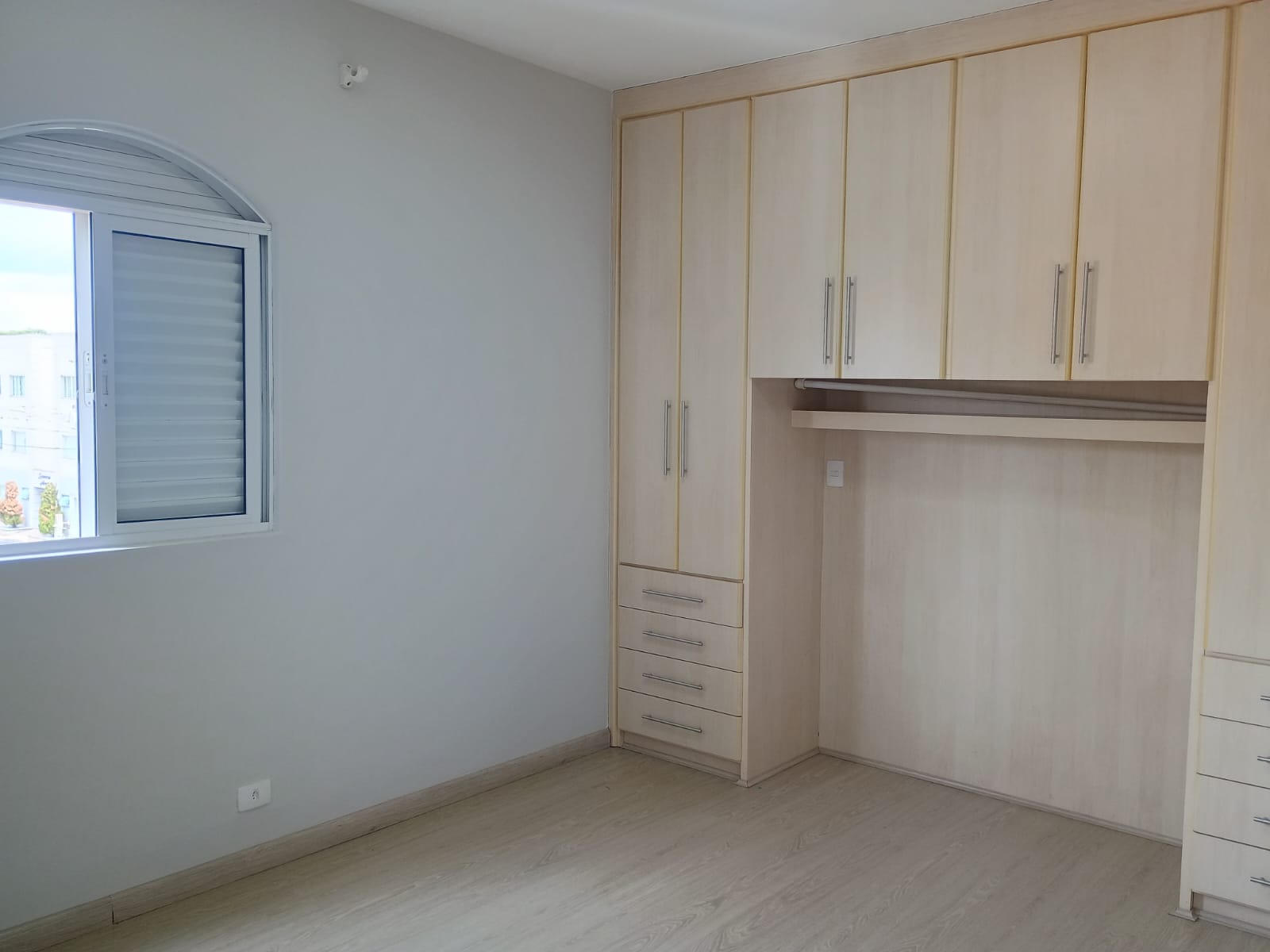 Apartamento com cozinha planejada e três quartos sendo suíte, e um com guarda roupa, banheiro social. Com varanda e uma vaga de garagem. Condomínio em torno de R$450,00 (água e despesas do edifício).