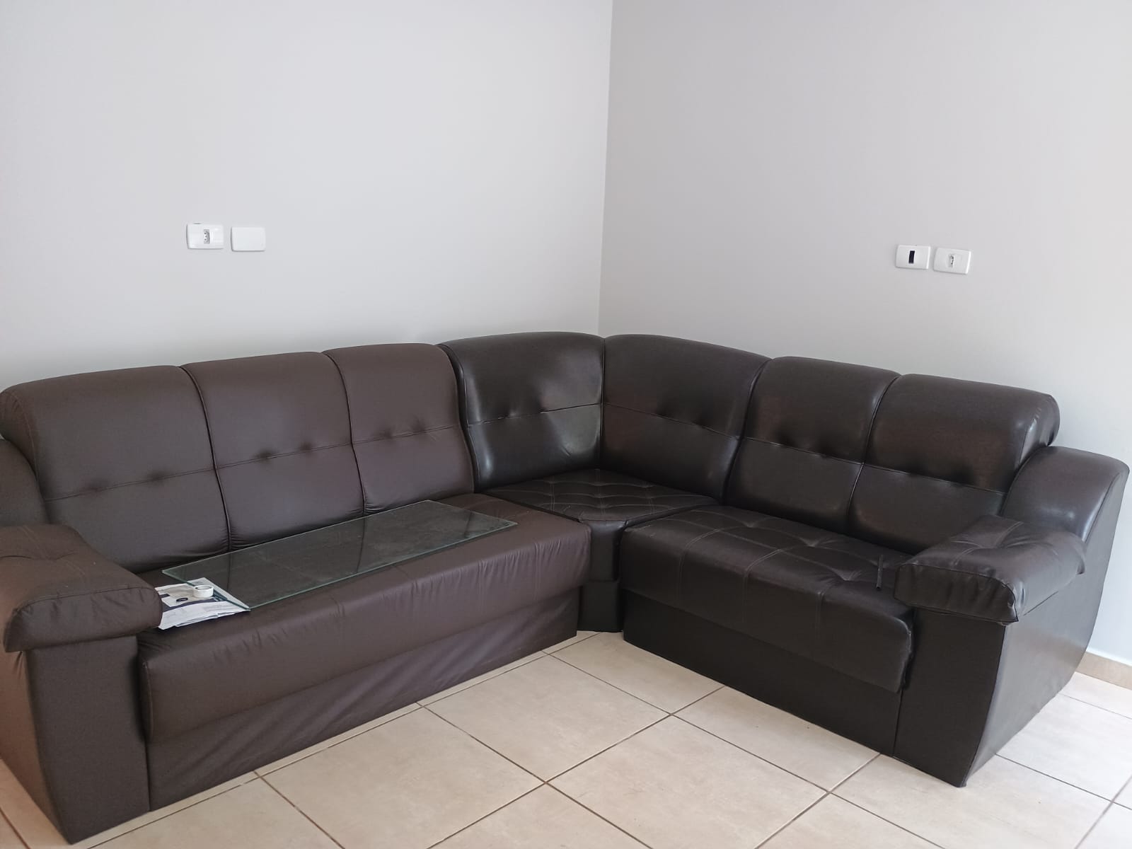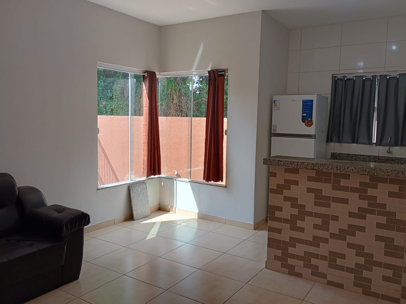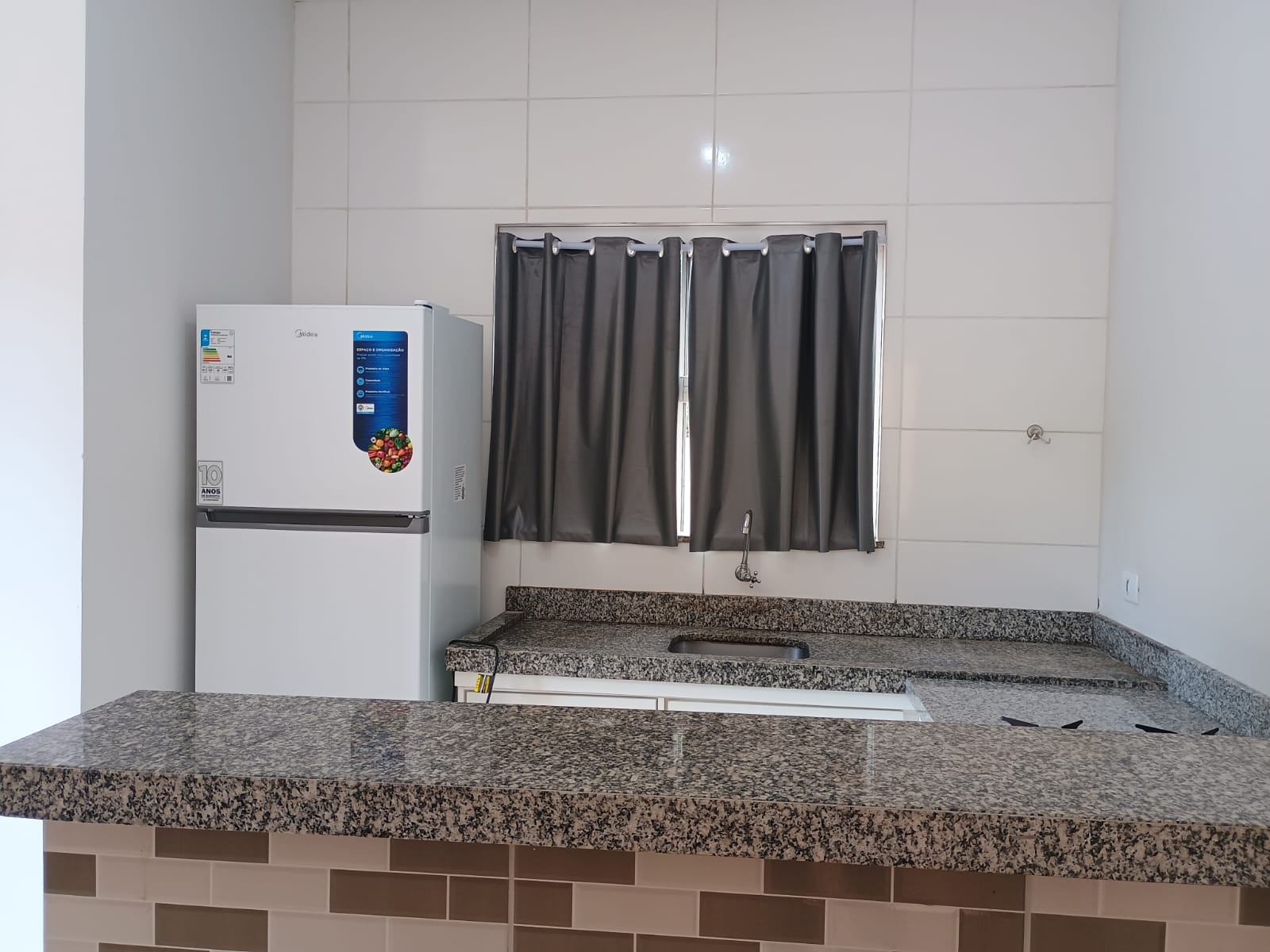 Casa toda mobiliada com sofá e com dois quartos com mobília cama e guarda roupa e eletrodomésticos novos geladeira nova, fogão e uma maquina de lavar.